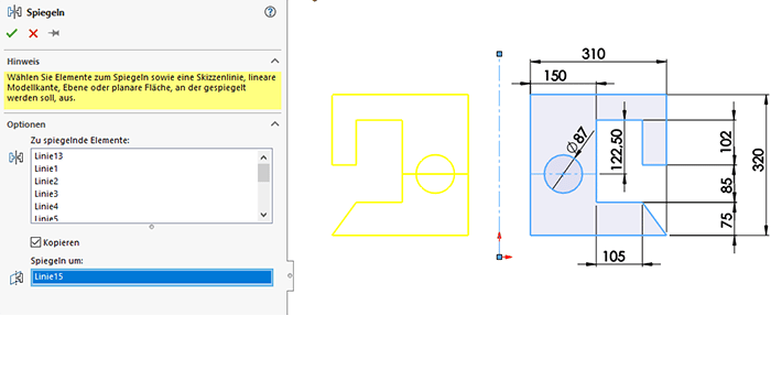 Sie haben viel Arbeit in eine komplizierte Skizze investiert und möchten diese nur noch auf die andere Seite spiegeln.