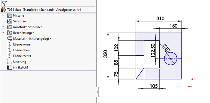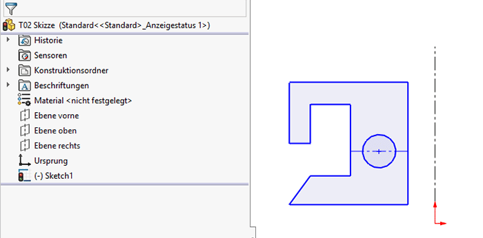 Screenshot SOLIDWORKS Skizze modifizieren - Hilfreiche Funktionen 2D-Skizze