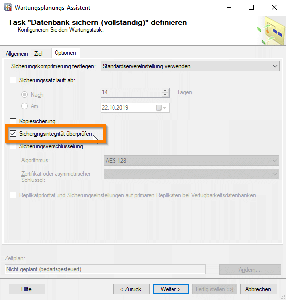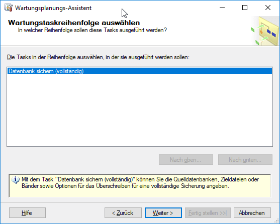Screenshot Wartungsplanungs-Assistent - Datenbanksicherung PDM Professional