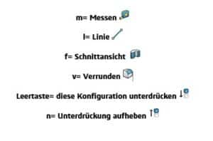 Auf der Taste “s” ist wieder ein kleines Shortcut Menü hinterlegt. Dieses Shortcut Menü wird im Grafik Bereich als kleines Fenster geöffnet. Dieses kann im Menü “Anpassen” unter der Registerkarte “Shortcut-Leisten” bearbeitet werden. Hier werden die Funktionen per Drag-and-drop von dem “Anpassen-Fenster” in den kleinen Grafikbereich gezogen.