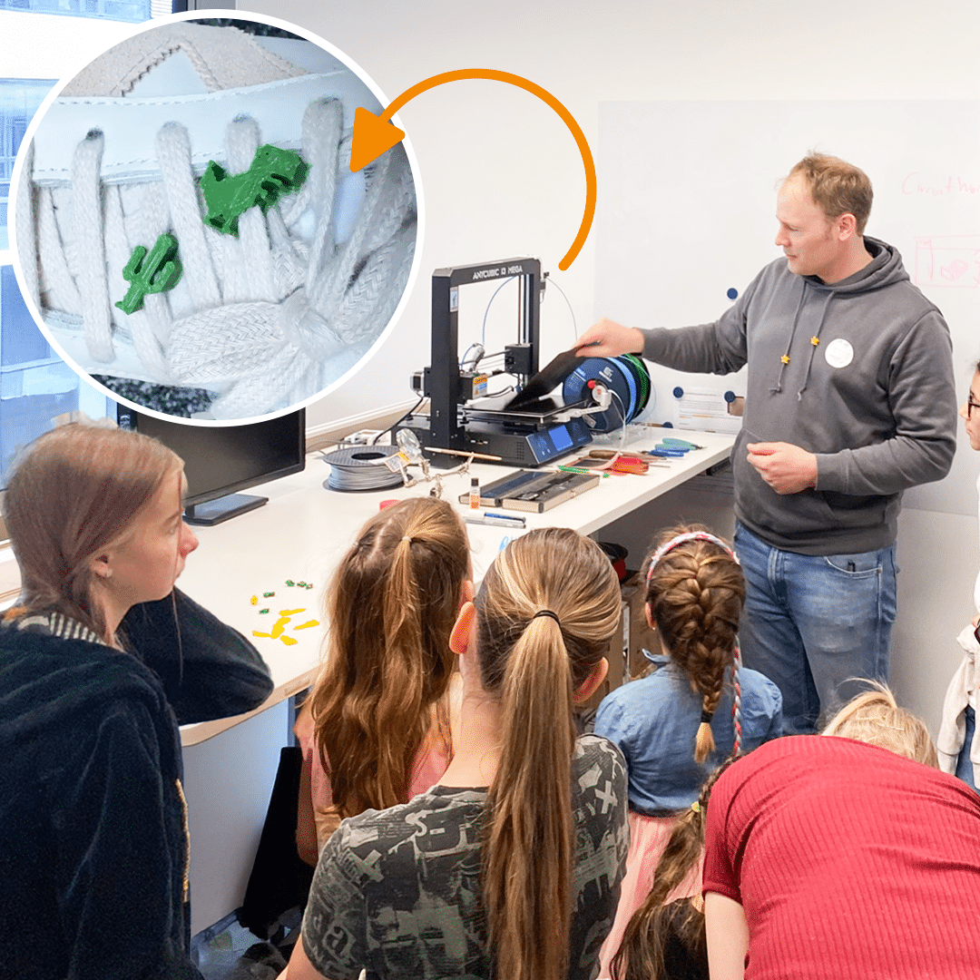 Im Grundkurs für additive Fertigung zeigte Dominik den interessierten Mädchen, worauf es beim 3D-Druck ankommt. Schicht für Schicht trägt der 3D-Drucker ein Kunststoff-Filament auf und formt damit das mit SOLIDWORKS designte Objekt. Mit Begeisterung wurden coole Accessoires für Schuhbänder und Haarspangen gefertigt und durften natürlich als Andenken mit nach Hause genommen werden.