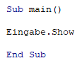 Kopieren Sie den gesamten Code (bis auf die Zeile Sub main()) aus der Hauptklasse (Kugel1) in die Form (Eingabe).