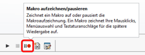 Hinweis: Die Makroaufzeichnung erstellt meist ein Programm mit vielen Redundanzen und nicht verwendeten Variablen. Diese können manuell angepasst und herausgelöscht werden.