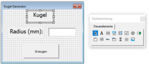 Die Steuerelemente können per Drag & Drop in die Form gezogen werden.