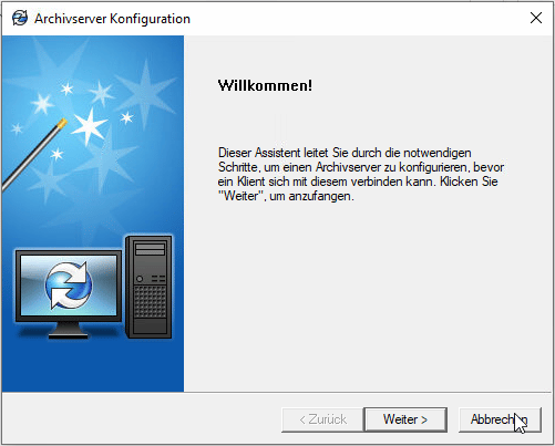 Klicken Sie auf „Weiter“ bzw. „Fertig stellen“, um die Einrichtung des Archivsservers abzuschließen. Auf jedem Rechner, auf dem ein PDM Client installiert wurde, kann mit Hilfe der Administration und den entsprechenden Anmeldedaten die Erstellung eines Tresors gestartet werden.