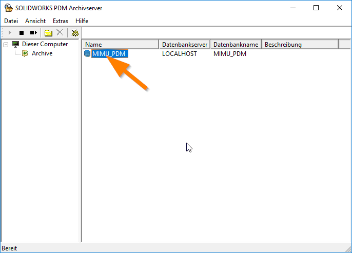 - Dem PDM Archiv, welches die eigentlichen Daten wie z.B. Baugruppe, Teile oder Zeichnungen enthält.