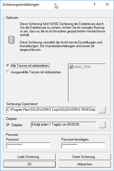 Datenbanksicherung SOLIDWORKS PDM Standard