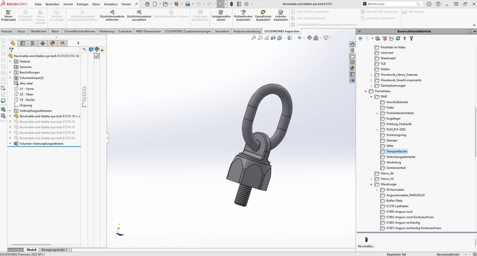 Screenshot Bookmarks Design Library - Verbindungselemente in SOLIDWORKS einfügen